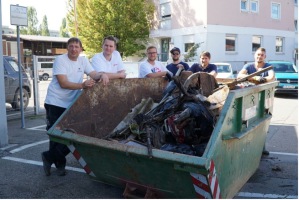 Im Abschnitt zwischen der Kruttenaustraße bis zur Otto-Hahn-Realschule wurden mehrere Anhänger voll Gerümpel gesammelt, die füllten den vom BGL bereitgestellten Container fast vollständig. Neben Rohrstücken, Kleidung, mehreren Einkaufswägen und 3 alten Fahrrädern fanden die Angler auch ein Pedelec des Fahrradverleihsystems „nextbike“. Was dem Fahrer des Rades wohl für eine Ausrede einfiel, nachdem er die Mietsache nicht ordnungsgemäß zurückbrachte?