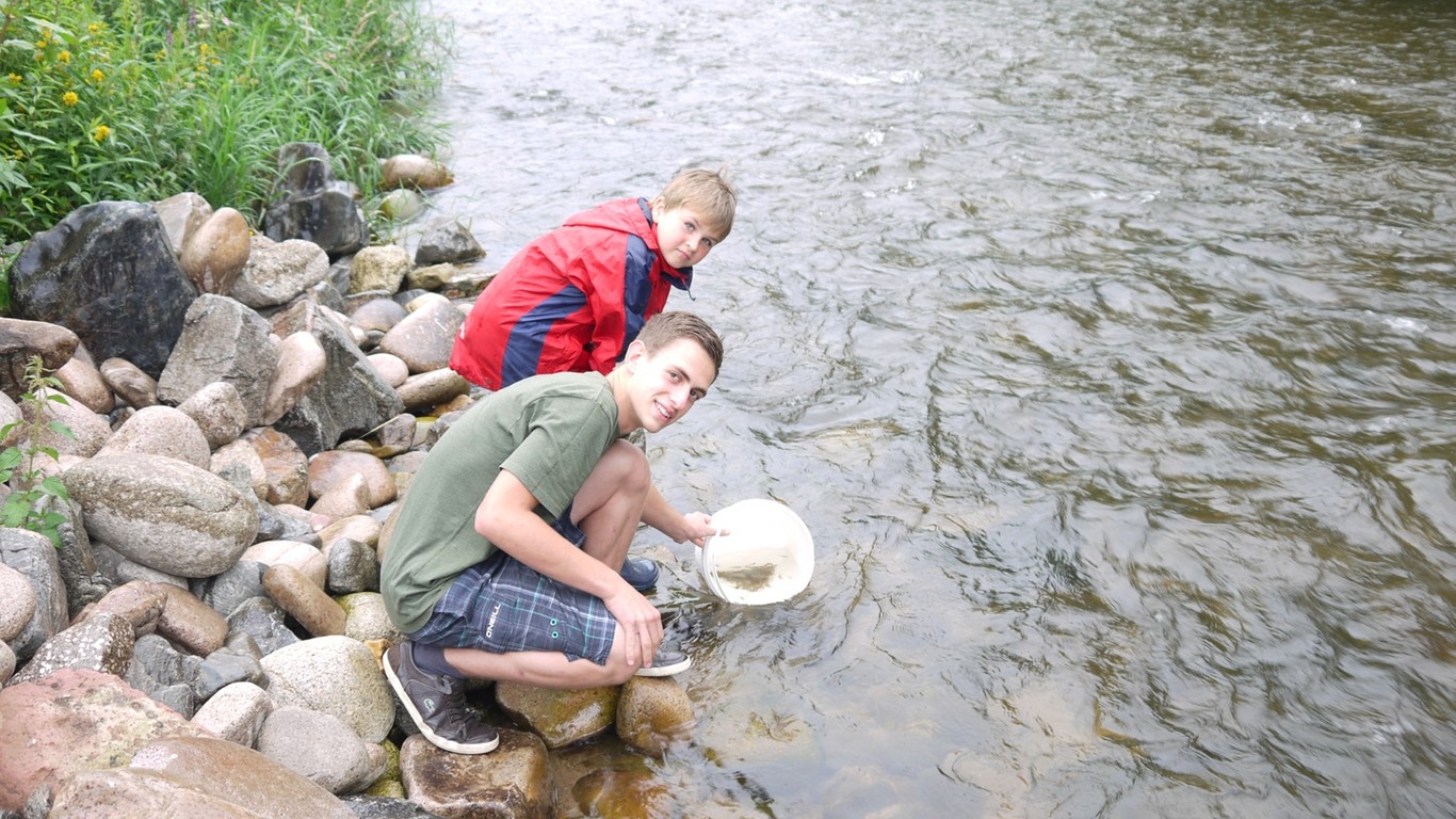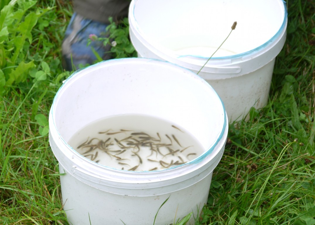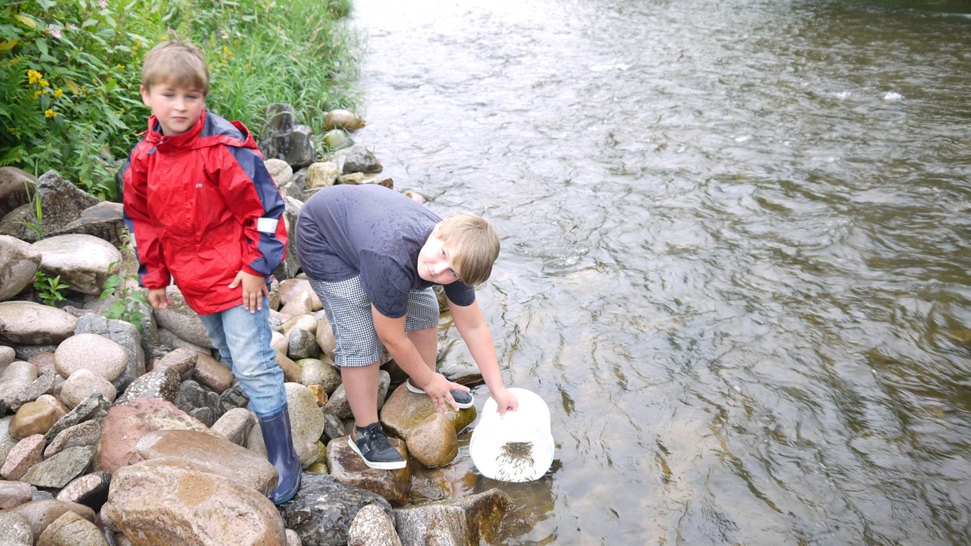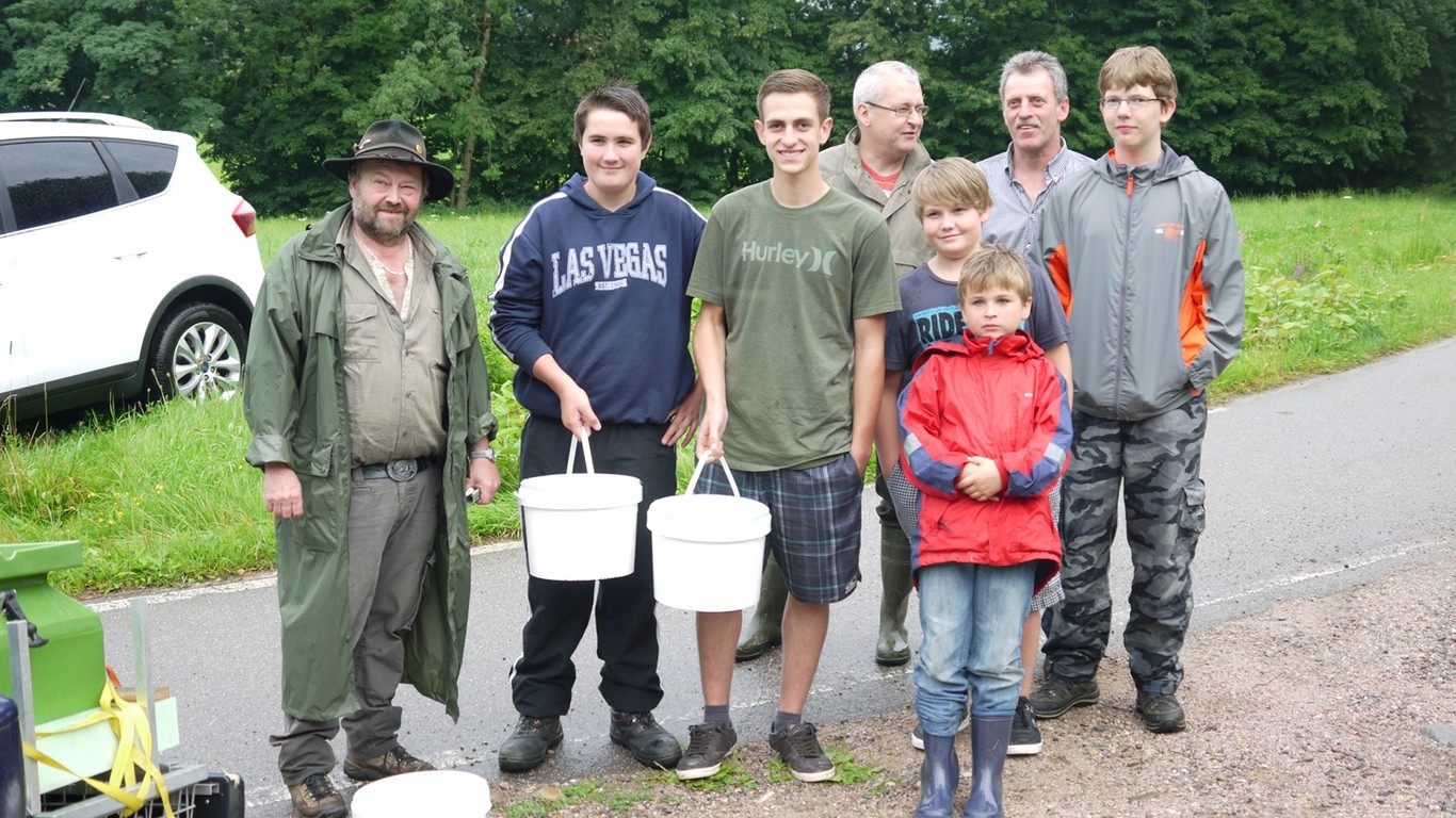 Kinzig 2012: Lachsbesatz durch die Angeljugend mit Lachsen der Lachszuchtstation Wolftal
