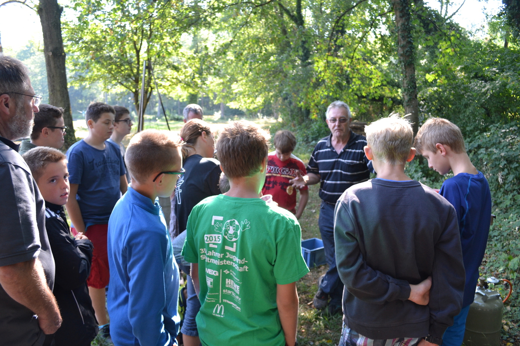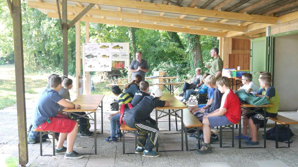 Doch bevor es ans Wasser ging, gab es für die Kinder erst einmal eine Stunde lang Theorie: Kursleiter Ralf Gfrörer erklärte die wichtigsten Grundlagen: „Wer beim Angeln erfolgreich sein will, muss die verschiedenen Fische, ihren Lebensraum und ihre Ernährung genauestens kennen.“ Um die Bedeutung von Sauerstoff und Nährstoffen in den Gewässern, um die Nahrungskette und den biologischen Kreislauf ging es in den weiteren Ausführungen. Auch die wichtigsten heimischen Fischarten, ihre Eigenschaften und Gewohnheiten wurden anhand von farbigen Bildern behandelt.